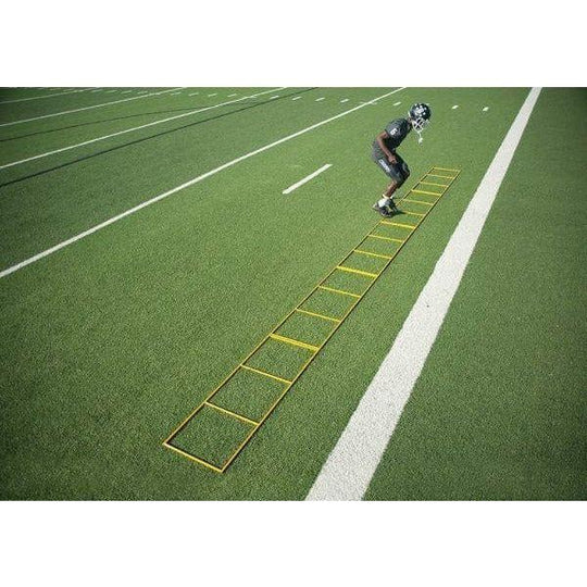 Keeping the feet close to the ground, players improve speed and balance. Stiff PVC rungs attached to webbing make 18 stepping areas. Unbuckle the 30’ Ladder into two 15’ sections to vary the drills. Lays in place indoors or out. Folds compactly for storage. Nylon carry bag included. 30’ L x 20” W