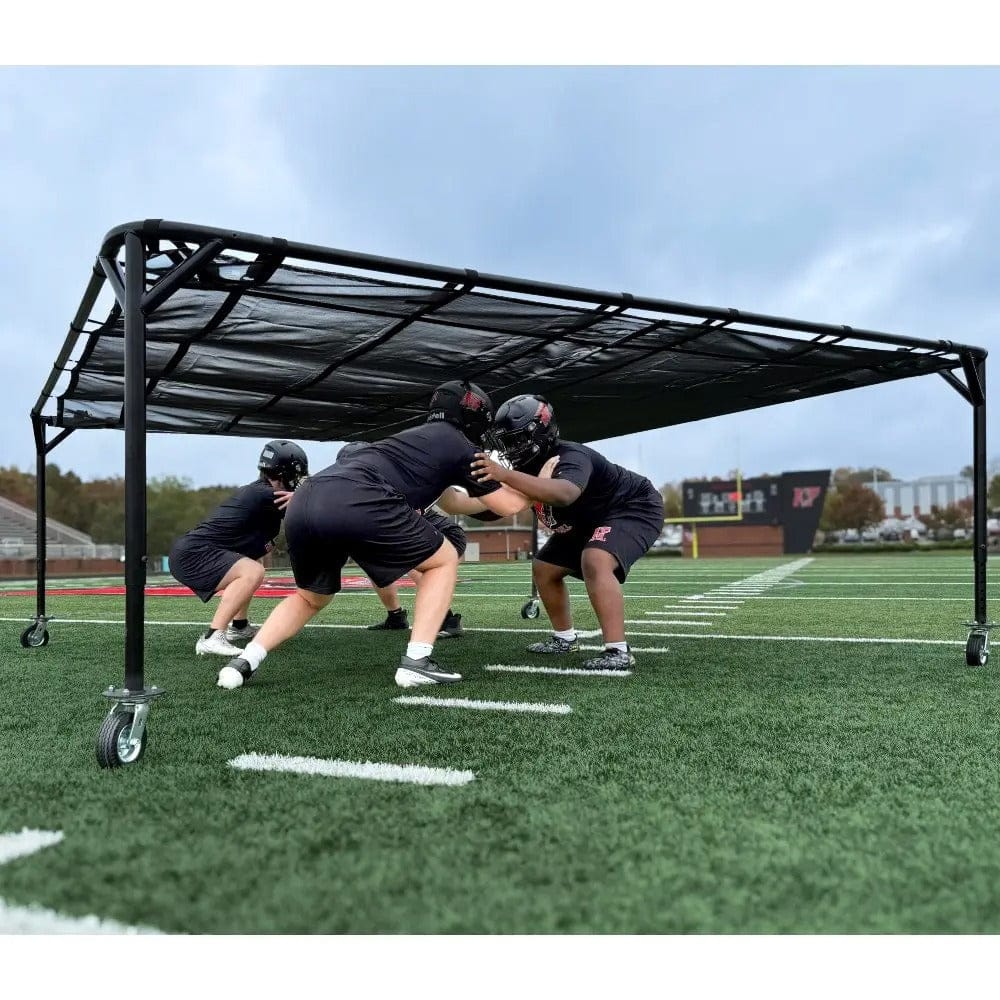 KEEPING MULTIPLE PLAYERS LOW - In general, the Crowther Jam Tents are designed to keep players low and maintain a good football position while moving. If your goal is to train as many athletes as possible, in as many varied drills as possible, and in the shortest possible time – then you have found the perfect chutes! The angled legs of the chutes allow more room. Each leg doesn’t go straight down. This, in effect, increases your workable space under the chutes. Players can exit the chutes from every angle, including through the legs.
