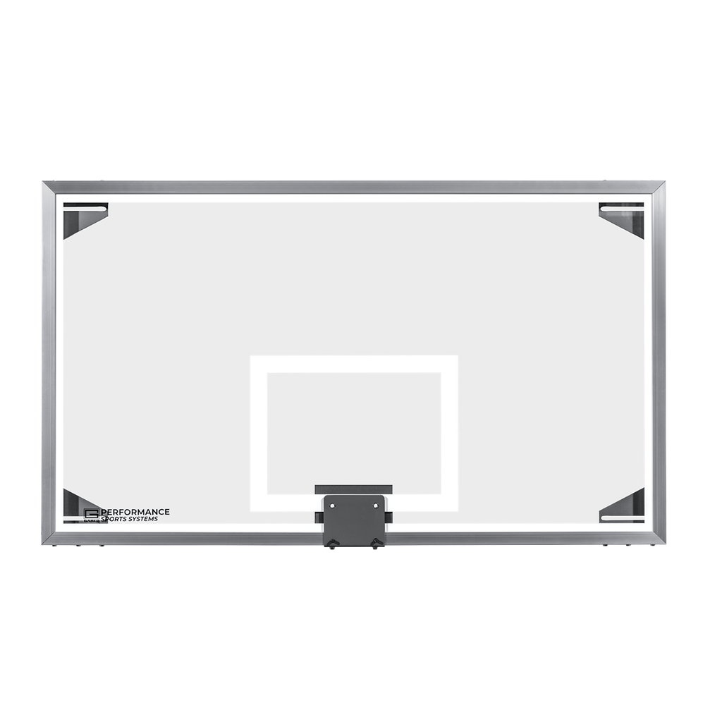 Aluminum-framed board withstands 900 lbs pressure when used with a direct goal mounting