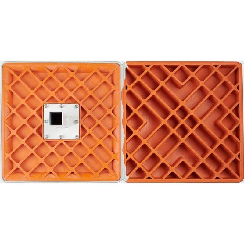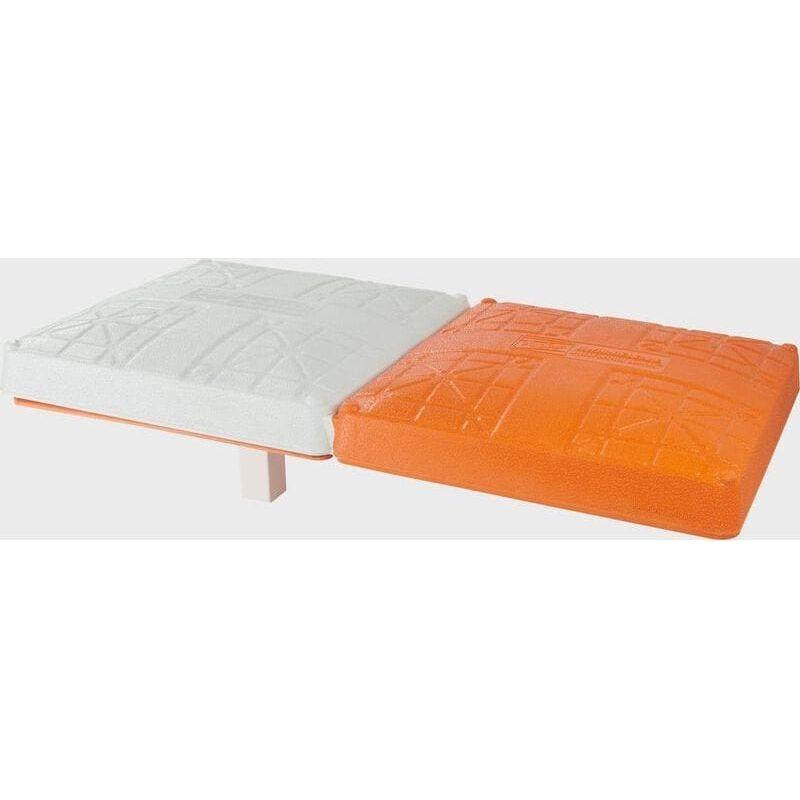 The Rawlings Hollywood Impact Kwik-Release double first base compresses upon impact like other Hollywood impact bases, but with an added safety feature where the top of the base disengages from the bottom platform upon a strong impact, greatly reducing the risk of player injury. The orange platform of the base is equipped with a 6" stanchion on its underside for mounting into a ground anchor (sold separately). The orange platform also features soft tabs that interconnect with the tabs on the underside of the top base. The soft orange tabs are soft enough for players to slide over when the top base disengages.