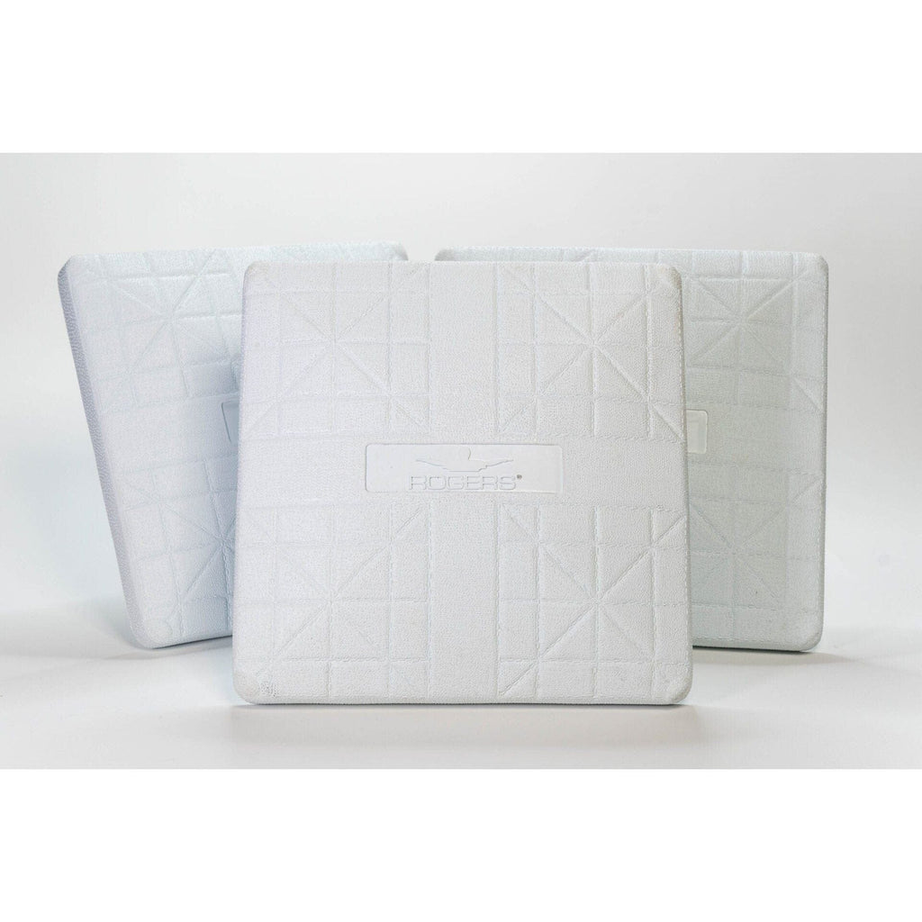 Rogers Pro-Style Flexy-Base is constructed of 100% durable white rubber. Underside beehive design allows the base to compress upon impact reducing sliding injuries while providing stability and support during regular play. Pebble-embossed, UV-resistant base top helps to prevent slipping and spike puncture. Ground anchors, rubber stanchions, and base plugs are included.