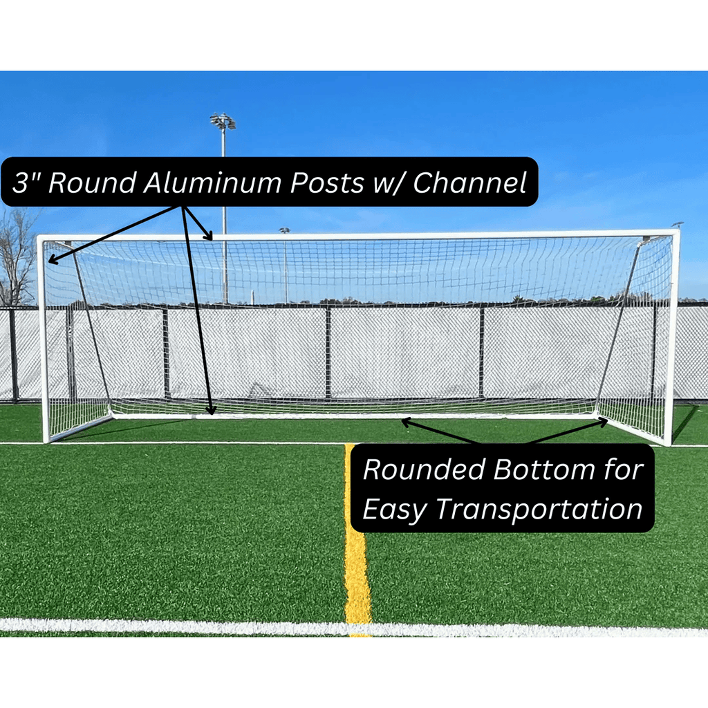 Lightweight 3” Round Aluminum Tubing with Built-in Channel for effortless soccer net attachment