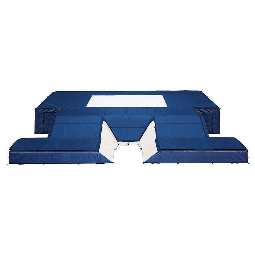 Uniquely fabricated landing systems with varying densities. Reinforced vinyl coating (18 oz. for collegiate styles) with spike resistant top pad.