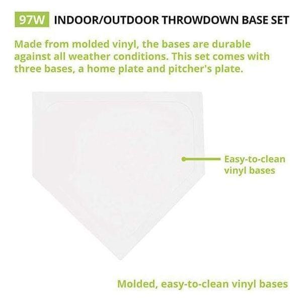 Molded, easy-to-clean vinyl bases are easy to set up inside or outside for an instant baseball diamond